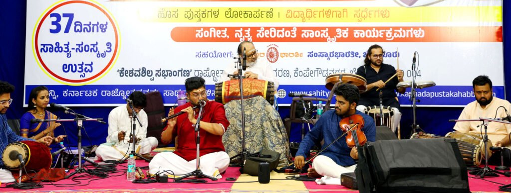 ಬೆಂಗಳೂರು: ಕರ್ನಾಟಕ ರಾಜ್ಯೋತ್ಸವ ಪ್ರಯುಕ್ತ ರಾಷ್ಟ್ರೋತ್ಥಾನ ಸಾಹಿತ್ಯ ಆಯೋಜಿಸುವ 37 ದಿನಗಳ ಕನ್ನಡ ಪುಸ್ತಕ ಹಬ್ಬದ ಸಾಂಸ್ಕೃತಿಕ ಸಂಜೆಯ ಮೊದಲ ದಿನ ವಿದ್ವಾನ್ ಆನೂರು ಅನಂತಕೃಷ್ಣ ಶರ್ಮಾ ಅವರ ತಂಡದವರಿಂದ ಲಯಲಾವಣ್ಯ – ತಾಳವಾದ್ಯಗೋಷ್ಠಿ ಕಾರ್ಯಕ್ರಮವು ನೆರೆದವರ ಮನ ರಂಜಿಸಿತು.