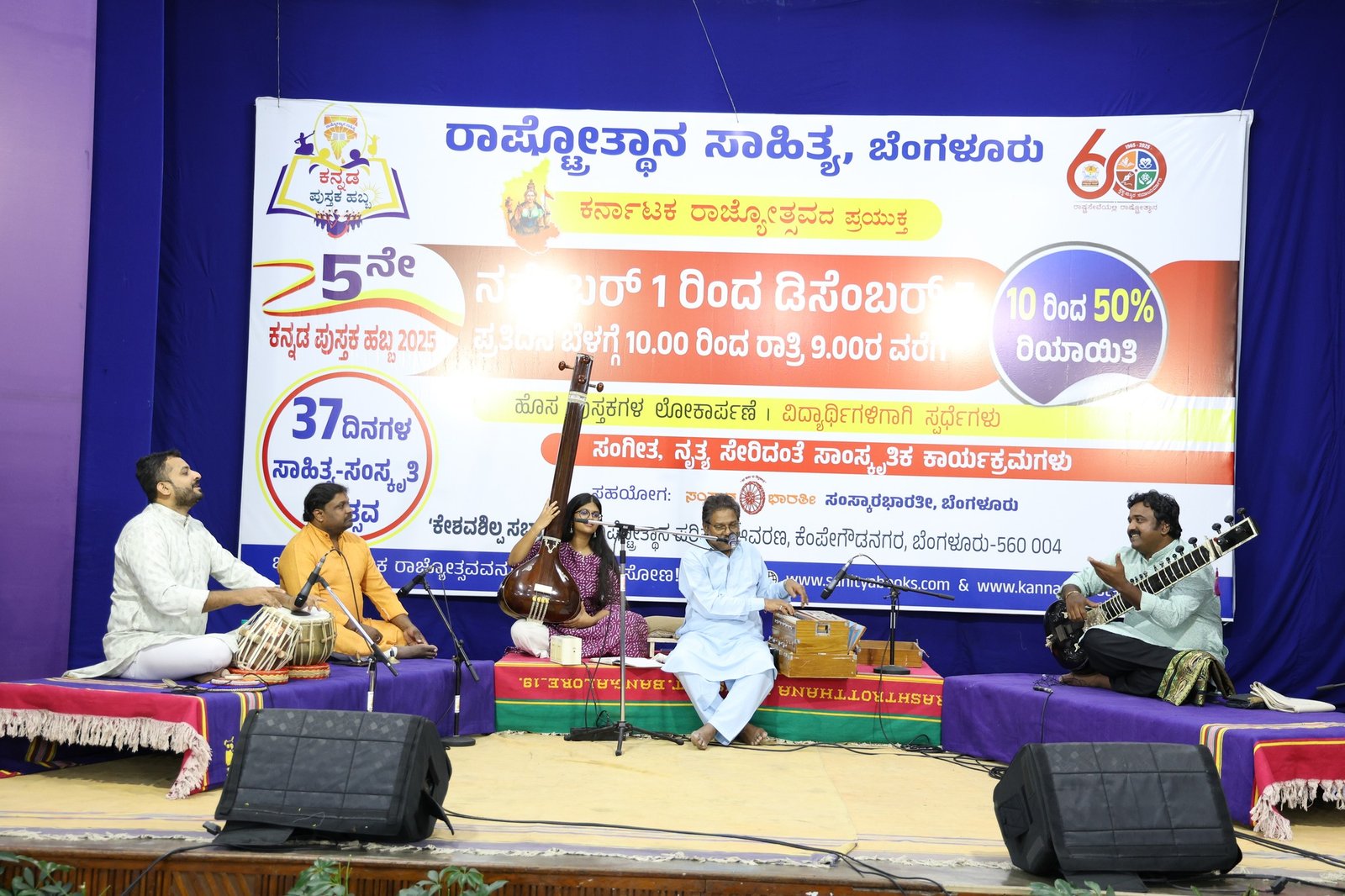 ಐದನೇ ಪುಸ್ತಕ ಹಬ್ಬದ ಪ್ರಯುಕ್ತ ರಾಷ್ಟ್ರೋತ್ಥಾನ ಸಾಹಿತ್ಯ ಹಾಗೂ ಸಂಸ್ಕಾರ ಭಾರತಿ ಬೆಂಗಳೂರು ಆಯೋಜಿಸುತ್ತಿರುವ 37 ದಿನಗಳ ಸಾಹೊತ್ಯ-ಸಾಂಸ್ಕೃತಿಕ ಉತ್ಸವವು ಕಲಾಪ್ರೇಮಿಗಳನ್ನು ಸೆಳೆಯುತ್ತಿದೆ. ಉತ್ಸವದ 23ನೇ ದಿನ ಸಂಜೆ ಪಂ. ಫಯಾಜ್ ಖಾನ್ ಅವರಿಂದ “ಕೃಷ್ಣಂ ವಂದೇ..” ಎನ್ನುವ ಹಿಂದೂಸ್ತಾನಿ ಗಾಯನ ಕಾಯ್ರಕ್ರಮ ನಡೆಯಿತು. ಅದ್ಭುತ ಗಾಯನದ ಸುಂದರ ಕ್ಷಣಗಳು ಕ್ಯಾಮೆರಾ ಕಣ್ಣನಲ್ಲಿ….
